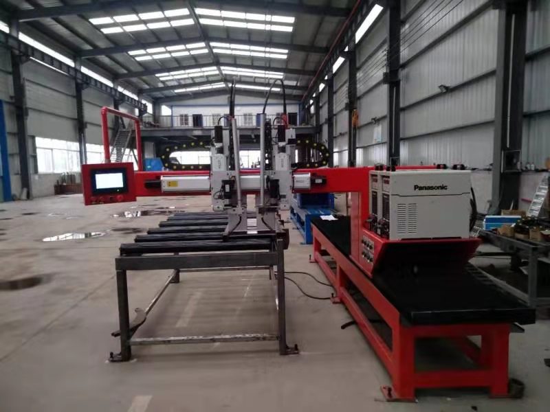 掛車生產(chǎn)過程中,車廂門因量大、工序復雜、焊接難度高,制約著生產(chǎn)產(chǎn)量。金瑞公司在原單槍焊接工藝基礎上,研發(fā)出雙槍自動化焊接設備。該設備立足于自動化生產(chǎn)線布置,從起槍、焊接、旋轉(zhuǎn)、收槍、回位,實行全自動編程控制,一臺設備相當于兩臺設備生產(chǎn)效率,避免了焊接生產(chǎn)中活件翻轉(zhuǎn)工序,勞動效率提高兩倍以上。